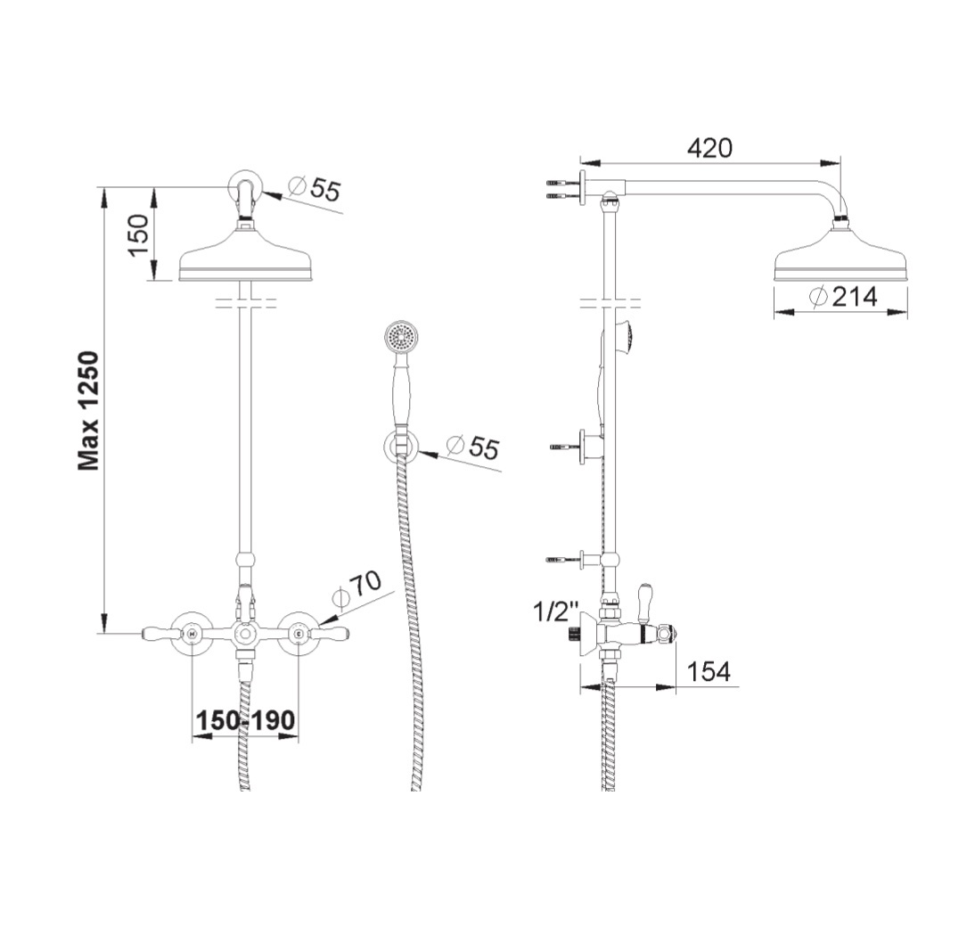 1935 Duschset mit Mischer für Wandmontage, Duschstange, Duscharm und 200mm Kopfdusche