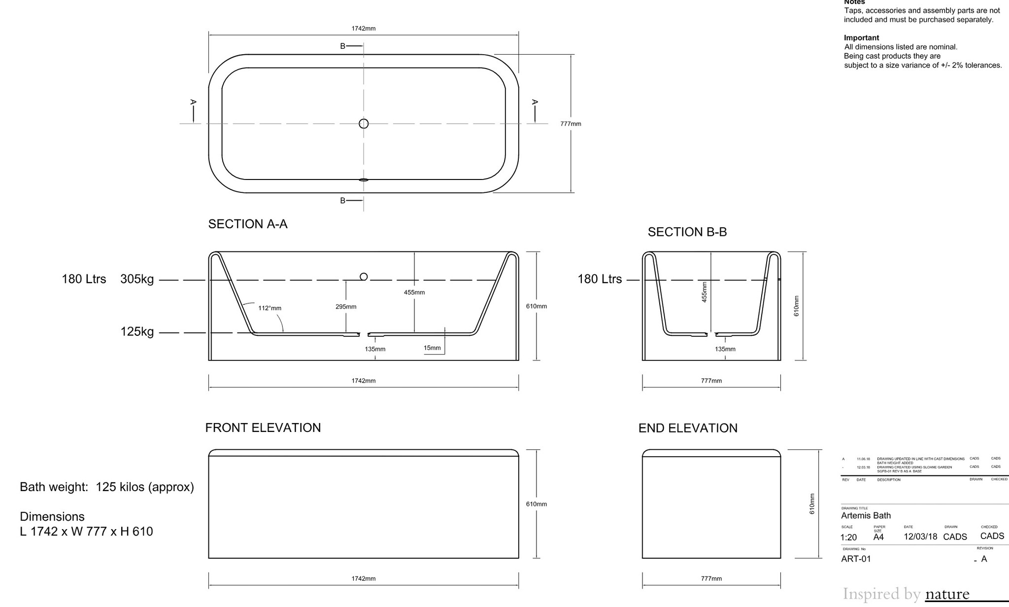 A&B Freistehende Badewanne aus Mineralguss Artemis