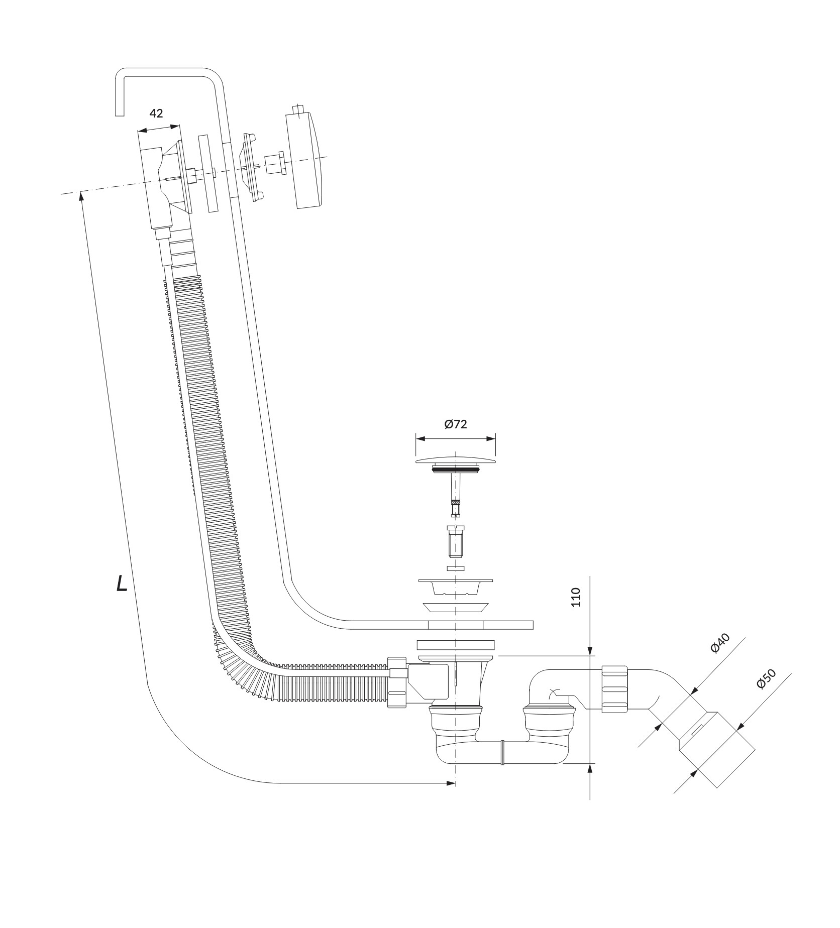 Kann verwendet werden, wenn der Abstand zwischen Überlauföffnung und Ablauföffnung größer als der Standard ist.