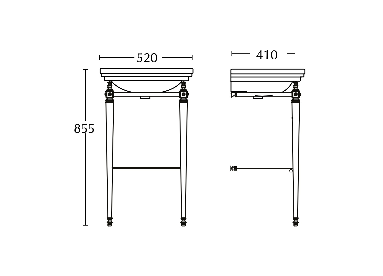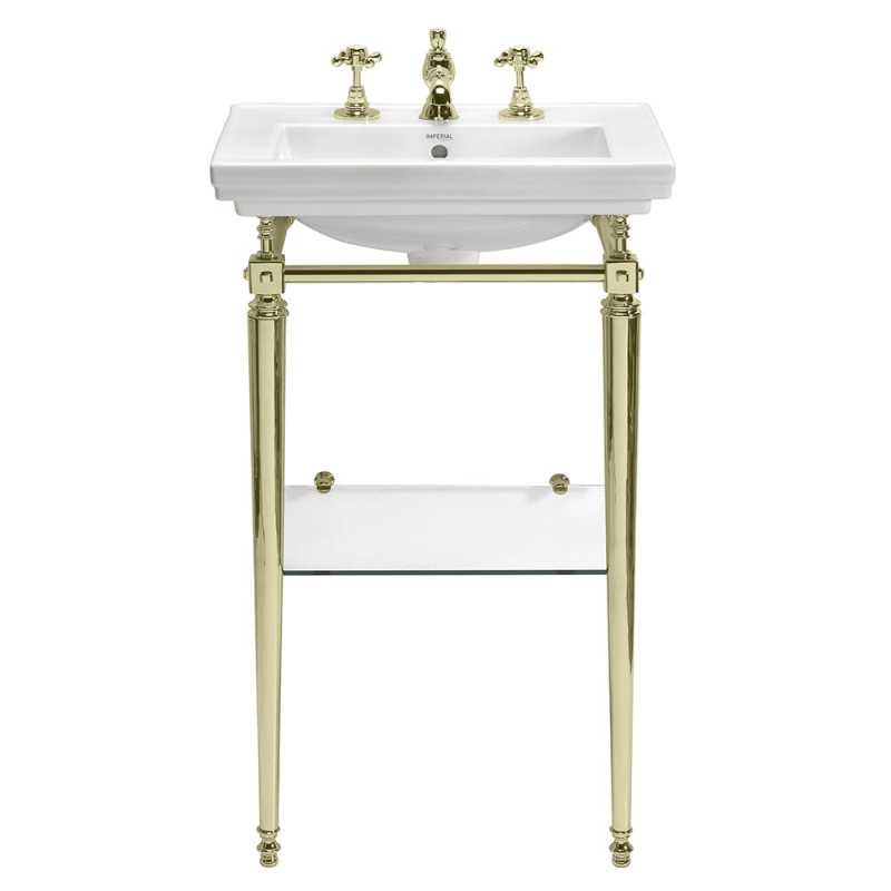 Imperial Waschbecken Art Deco 52cm mit Untergestell mit Glasablage aus Metall in verschiedenen Ausführungen; Waschbecken mit 1 oder 3 Hahnbohrungen