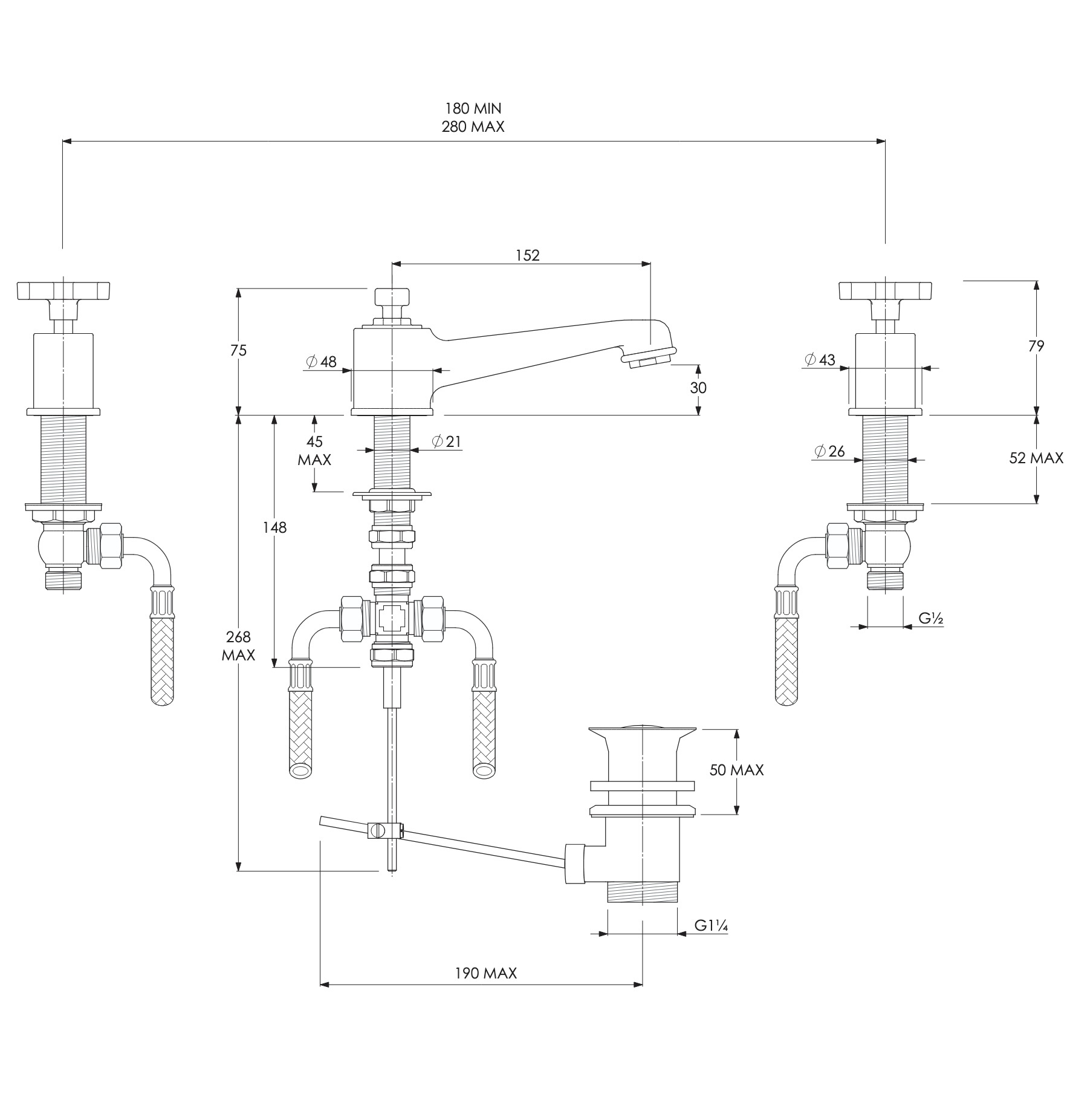 LB1935 Janey Mac 3-Loch Waschtisch-Armatur mit Kreuzgriffen JH-1222