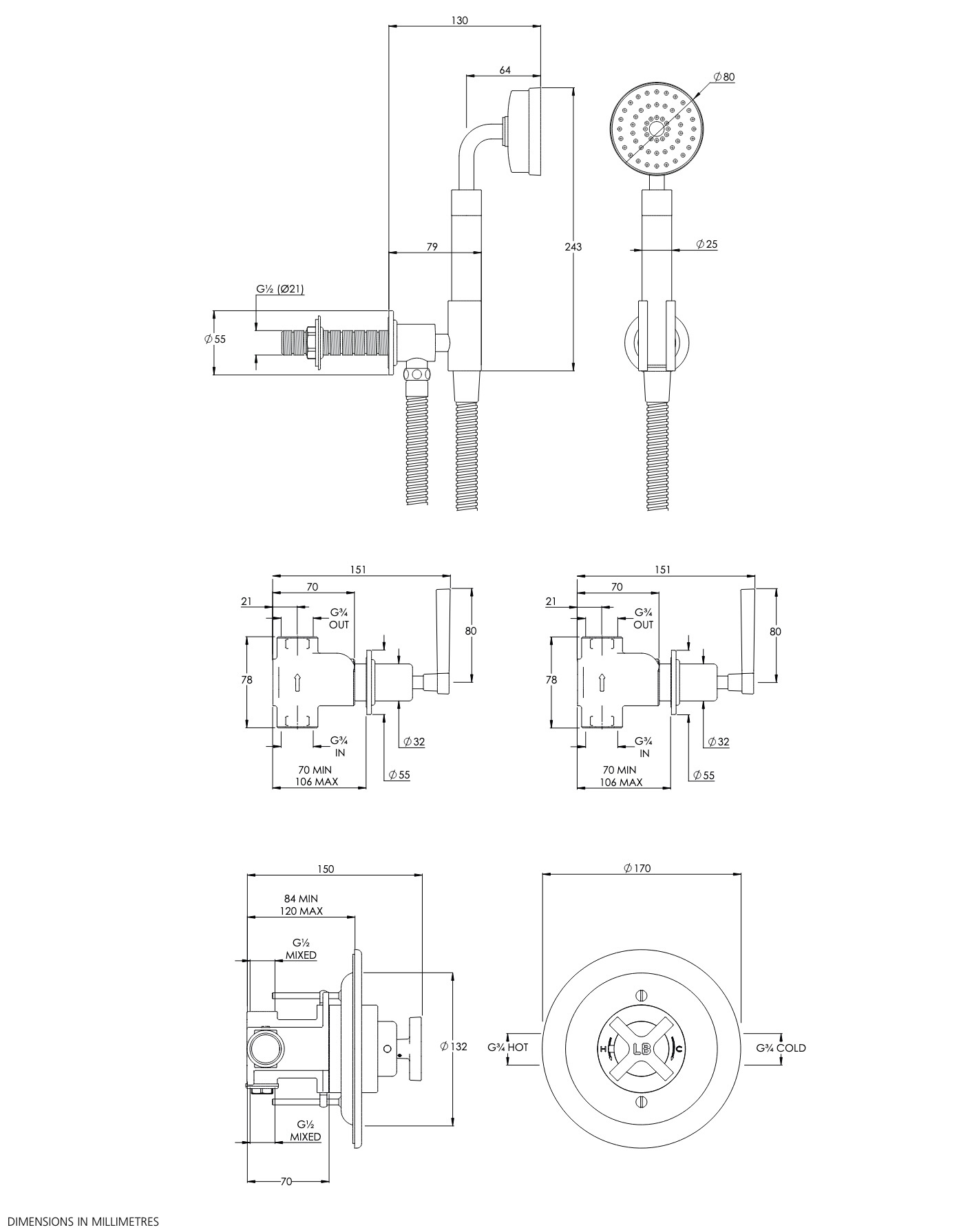 Lefroy Brooks 1935 Janey Mac LB1935 Janey Mac Unterputz Duschset mit Handdusch-Kit JM-8803