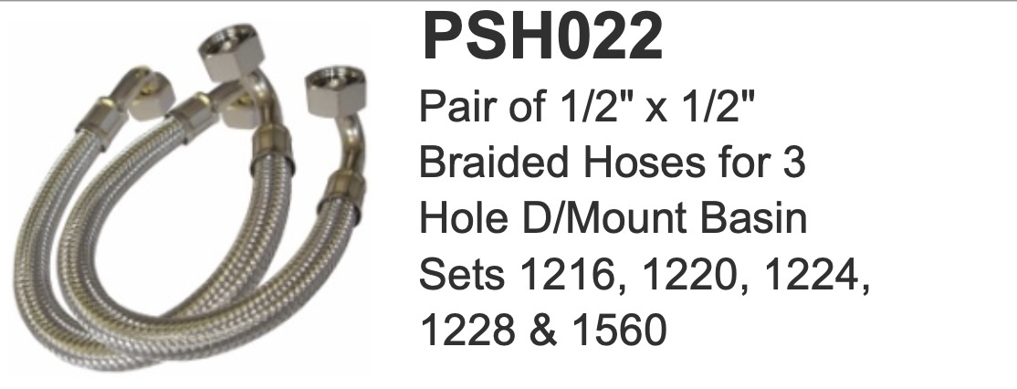 Pair of 1/2"x1/2" braided hoses for 3-hole deck mounted basin sets 1216, 1220, 1224, 1228 & 1560