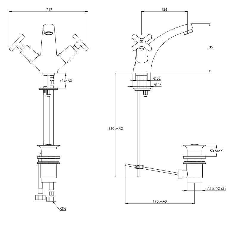 LB1930 Mackintosh 1-Loch Waschtisch-Armatur mit Kreuzgriffen MH-1185