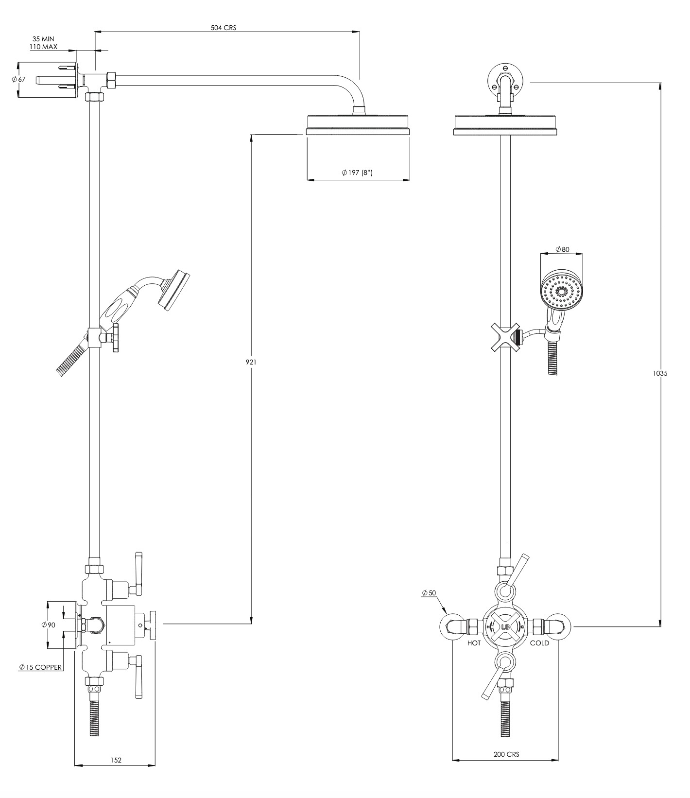LB1930 Mackintosh Aufputz Duschset mit 8" Duschkopf und Handdusche MBE-8754