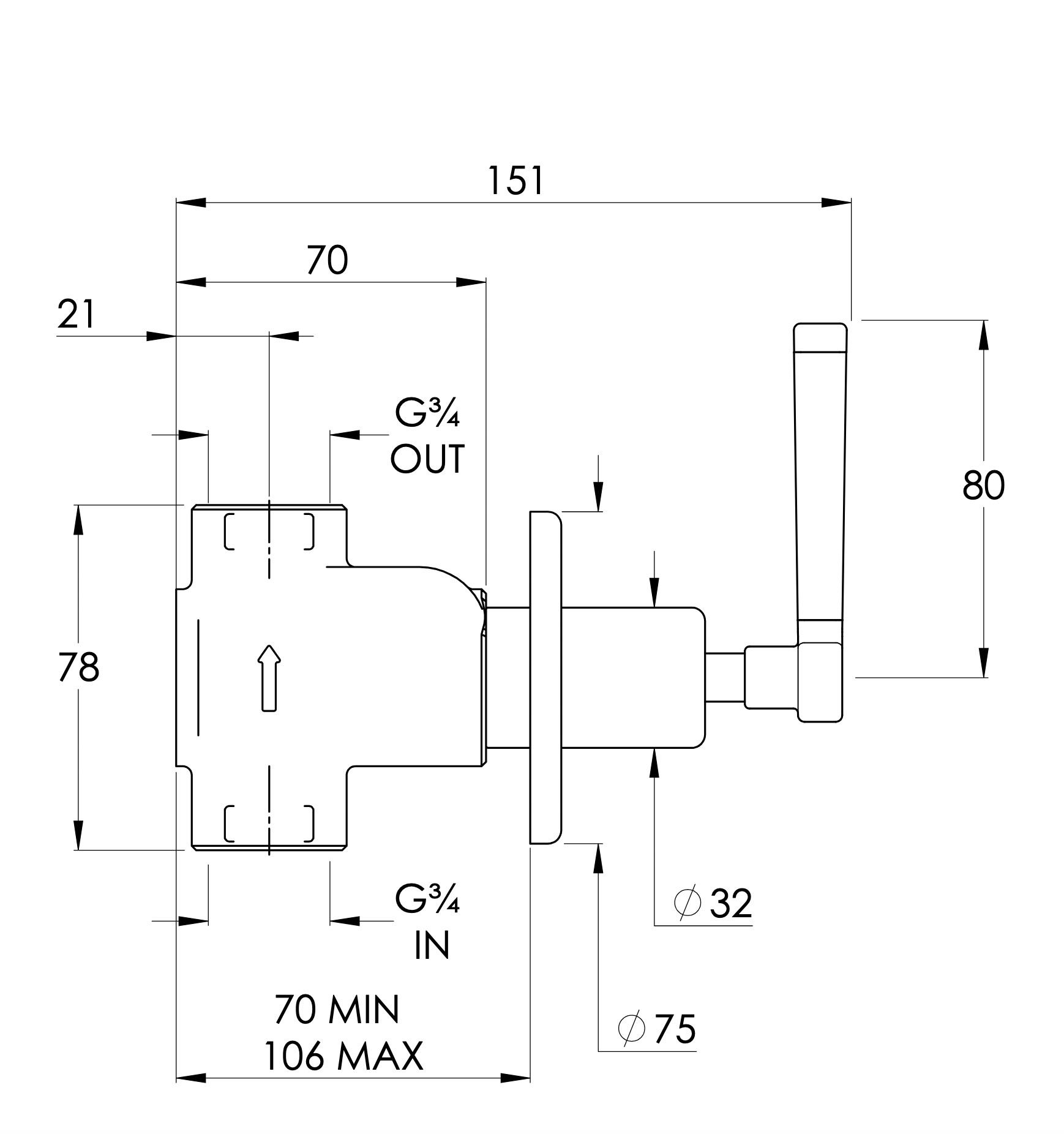 LB1930 Mackintosh Unterputz Absperrventil mit Hebelgriff MB-5000