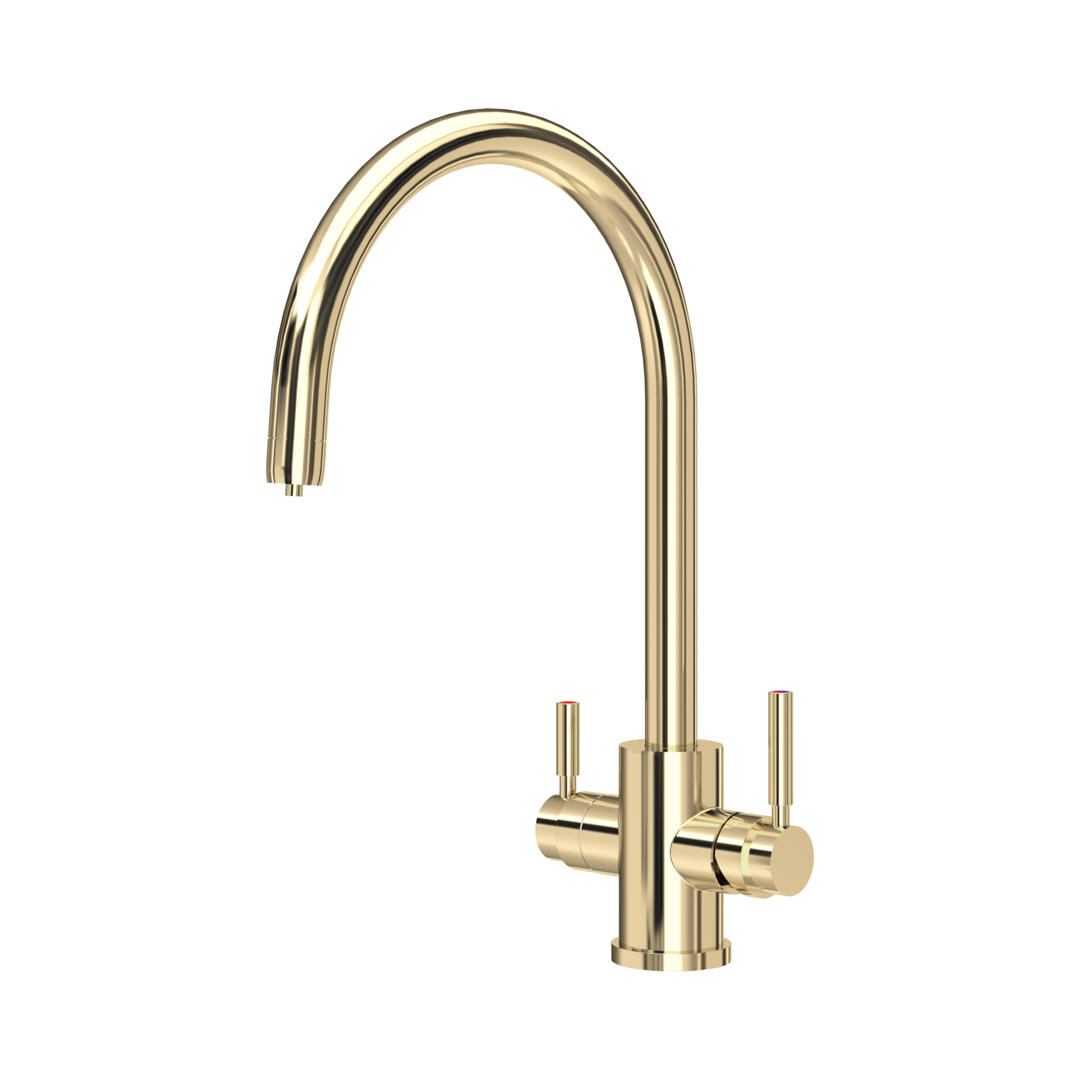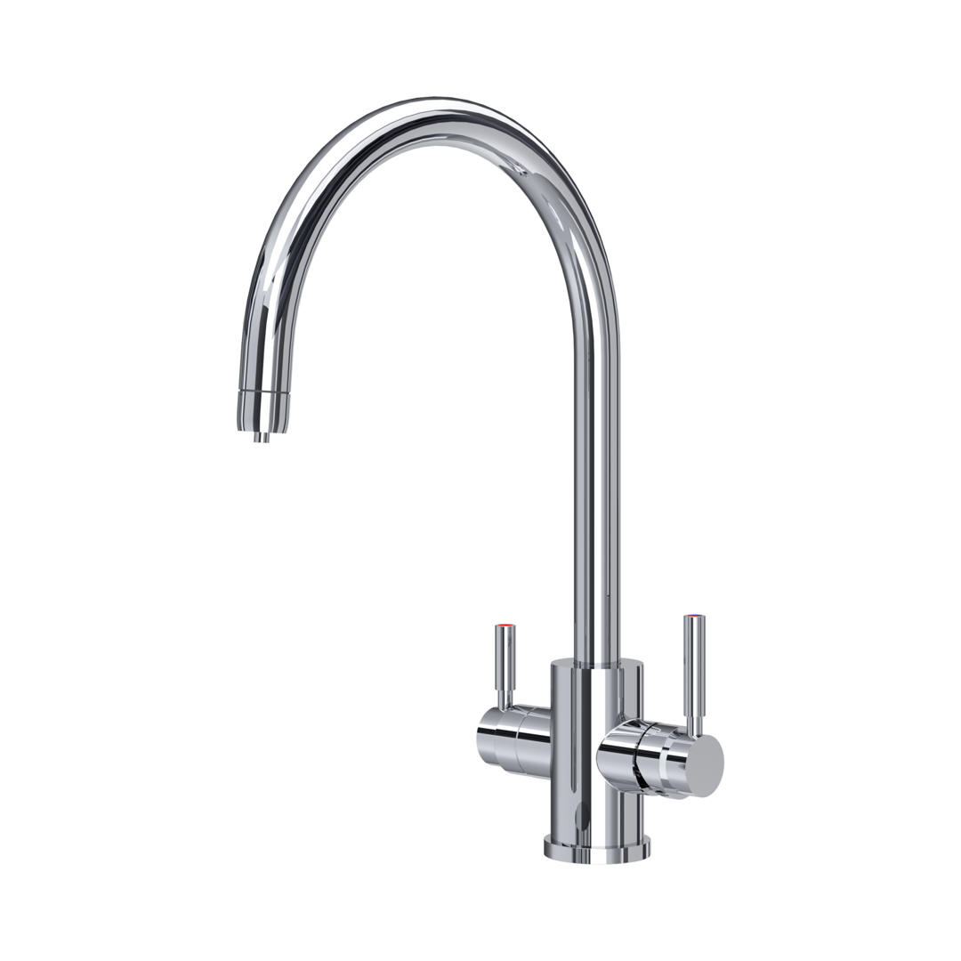 1-Loch Küchenarmatur mit Hebelgriffen - Instant Heisswasserfunktion, schwenkbarem Auslauf und Aerator für gleichmässigen Wasserfluss. Inklusiv Boiler.