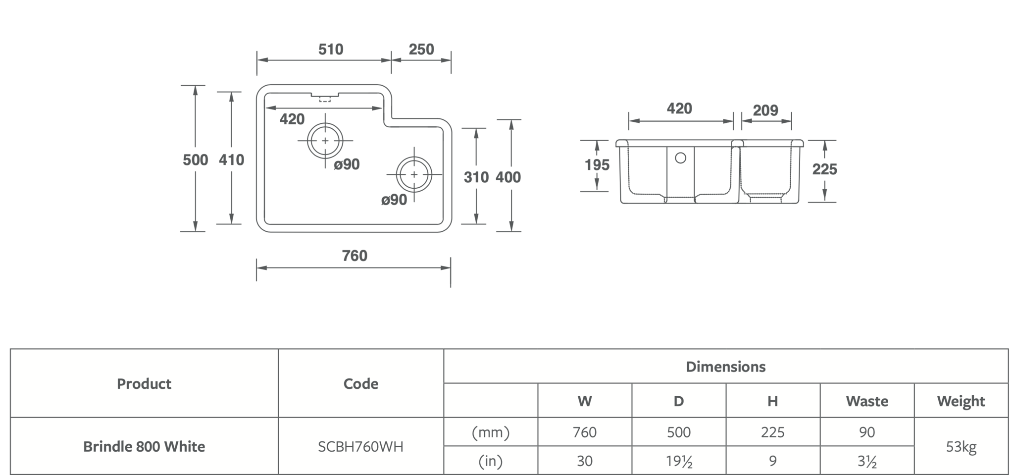 Keramik-Küchenspüle Brindle 800 SCBH760