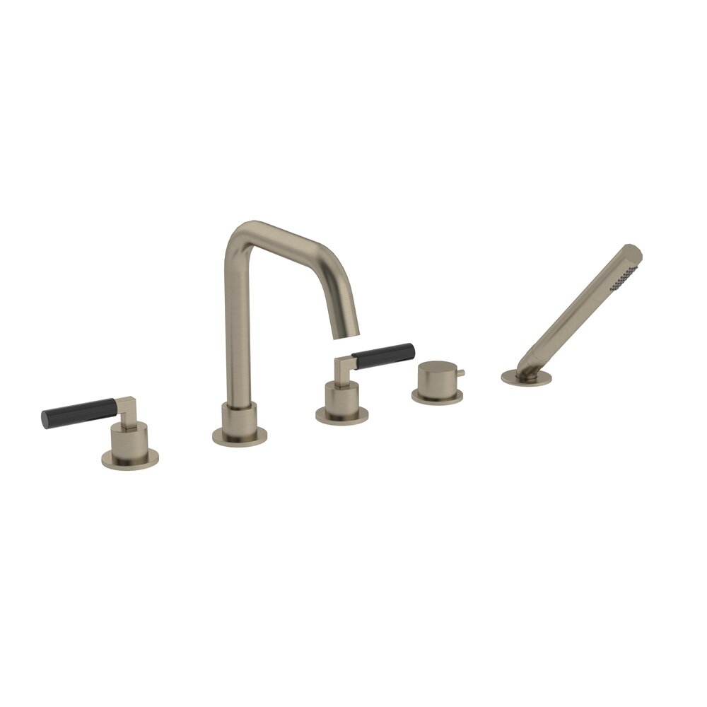 Zurich Fünfloch-Badewannenarmatur mit ausziehbarer Handdusche, Hebelgriff Keramik; mit schwenkbarem Auslauf