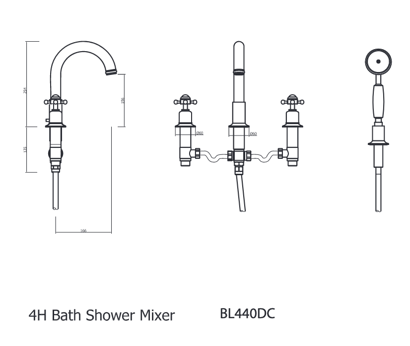 Belgravia Crosshead 4-hole bath mixer BL440DC
