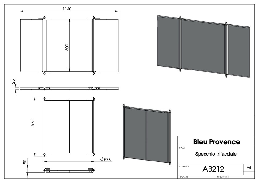 Bleu Provence BP 3-face foldable mirror AB212