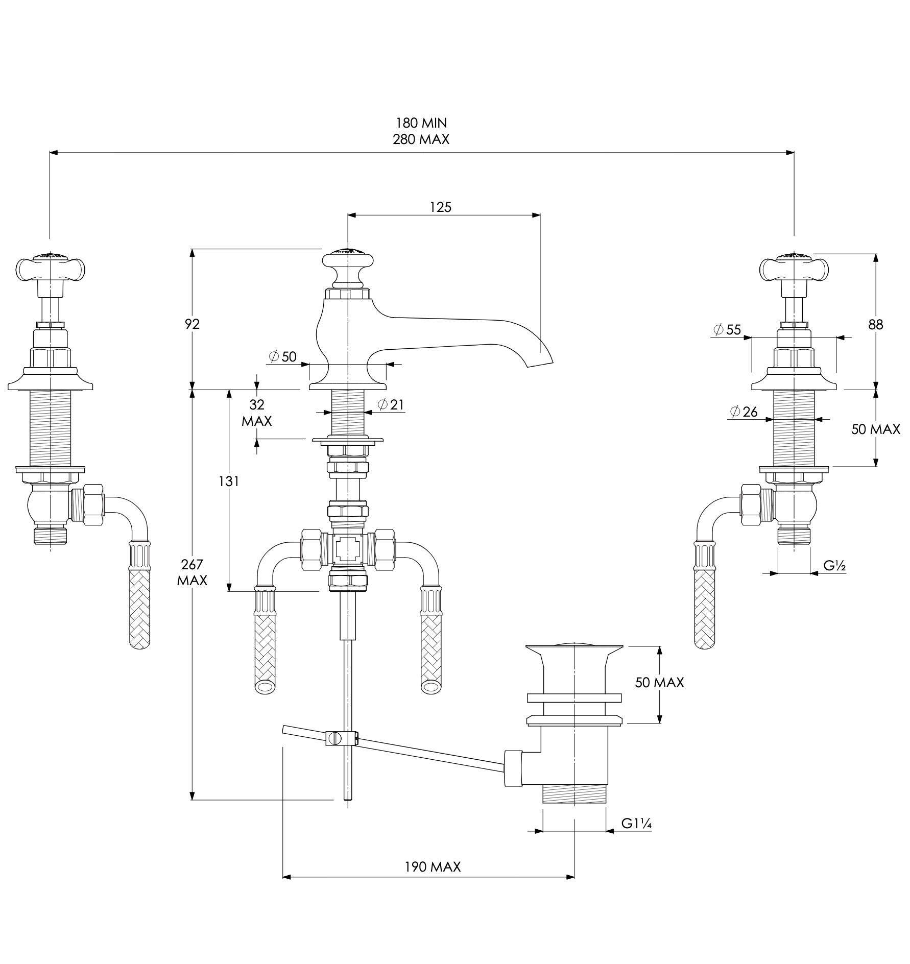 LB1900 Connaught 3-hole basin mixer with crosshead handles LB-1224
