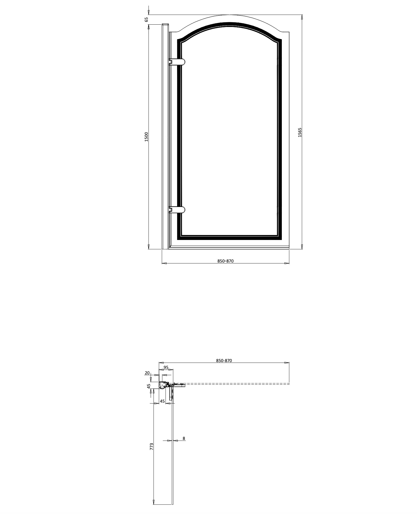 Classique Curved hinge bath screen 850mm