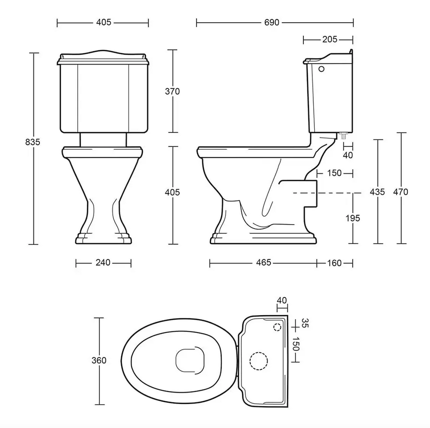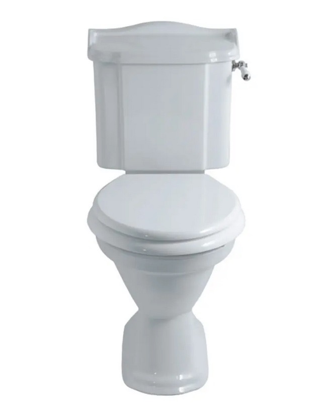 Close coupled WC with lever cistern and s-trap or p-trap pan.