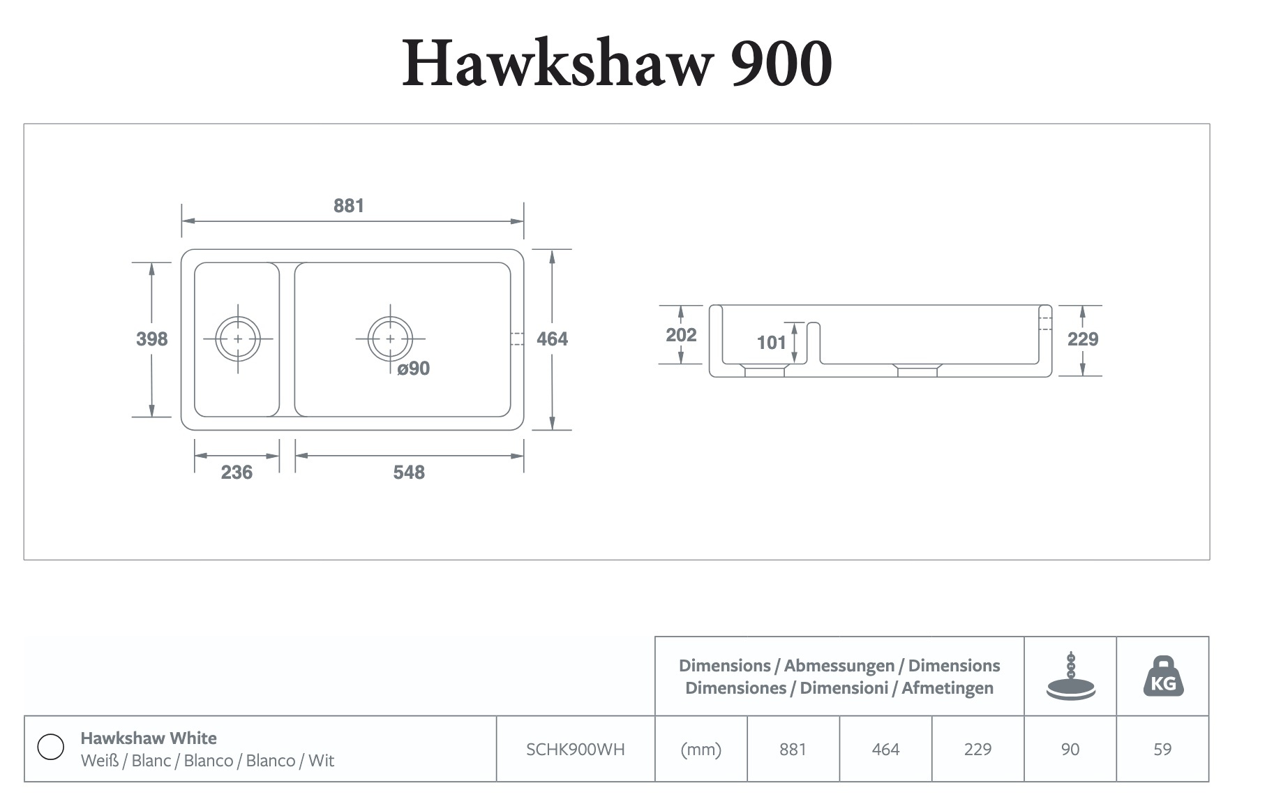 Kitchen sink Hawkshaw 900