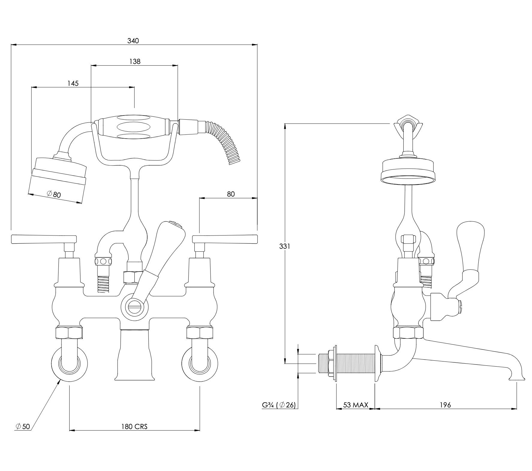 LB1930 Mackintosh wall mounted bath shower mixer MBE-1166