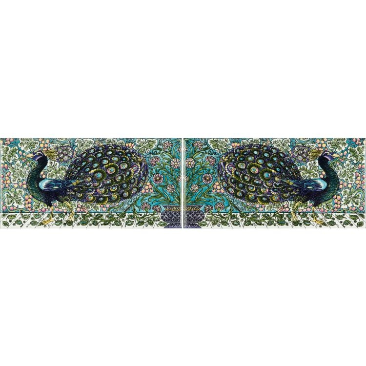 OS Artworks Arts & Crafts - William de Morgan Peacock Border 2-tile set on Brilliant White