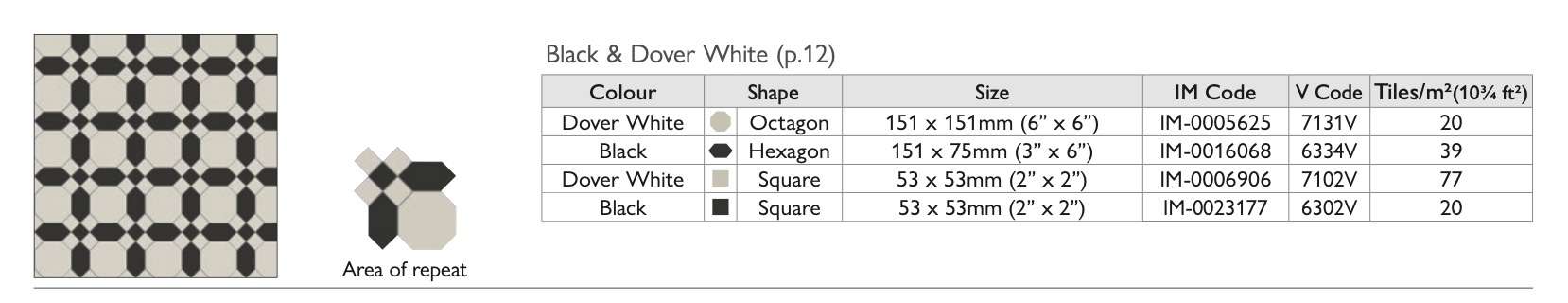 OS Victorian Floor floor tiles - Pattern Warwick (Black & Dover White)