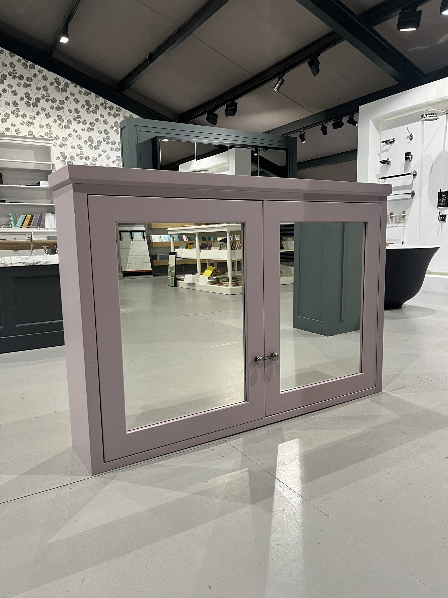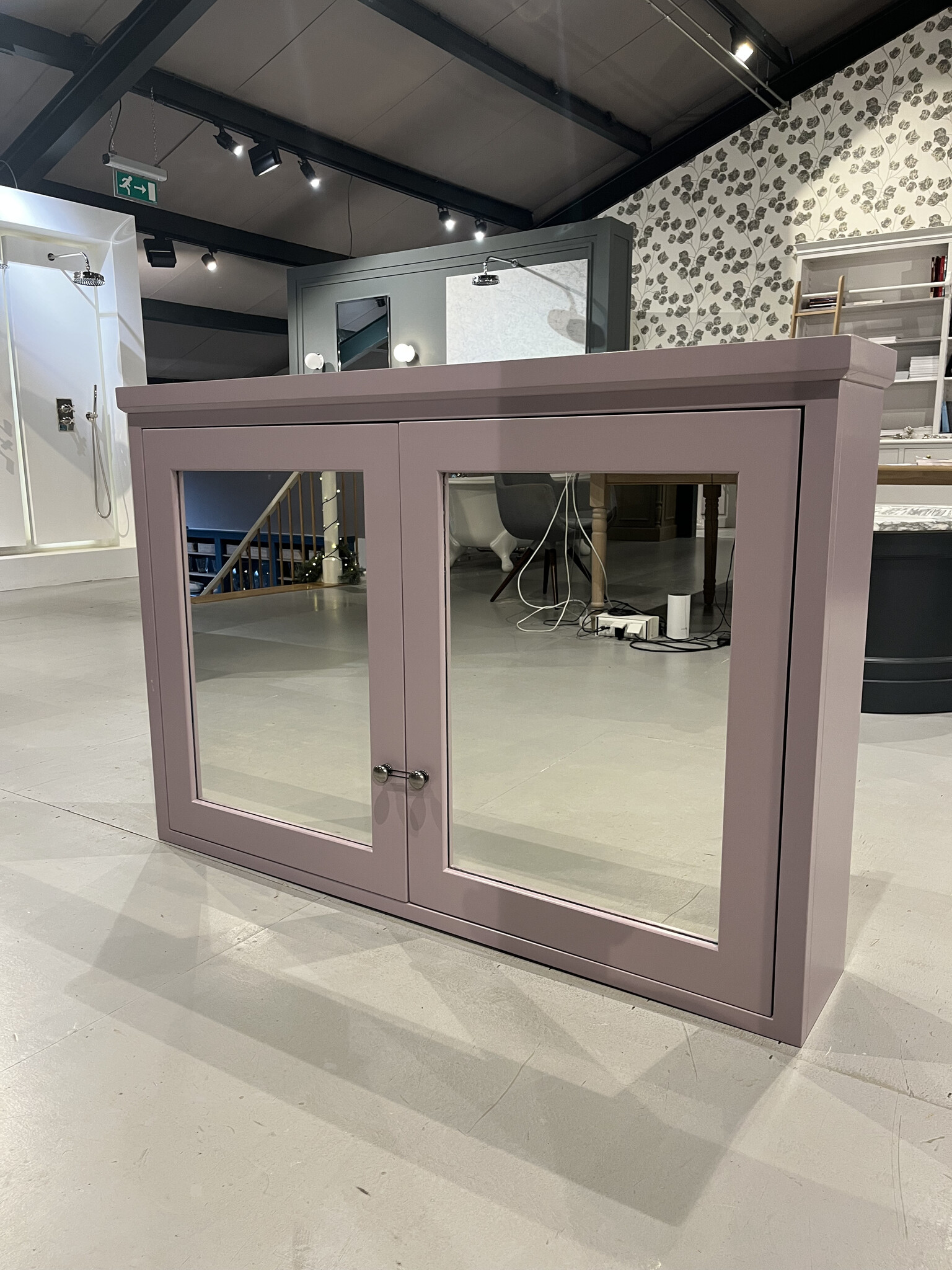 Solid wood bathroom mirror cabinet 140cm with shelf. Furniture colour lila