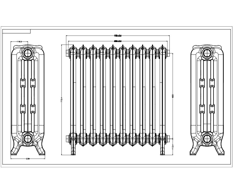 Aluminium radiator Rococo - 770 mm hoog, 10 elementen