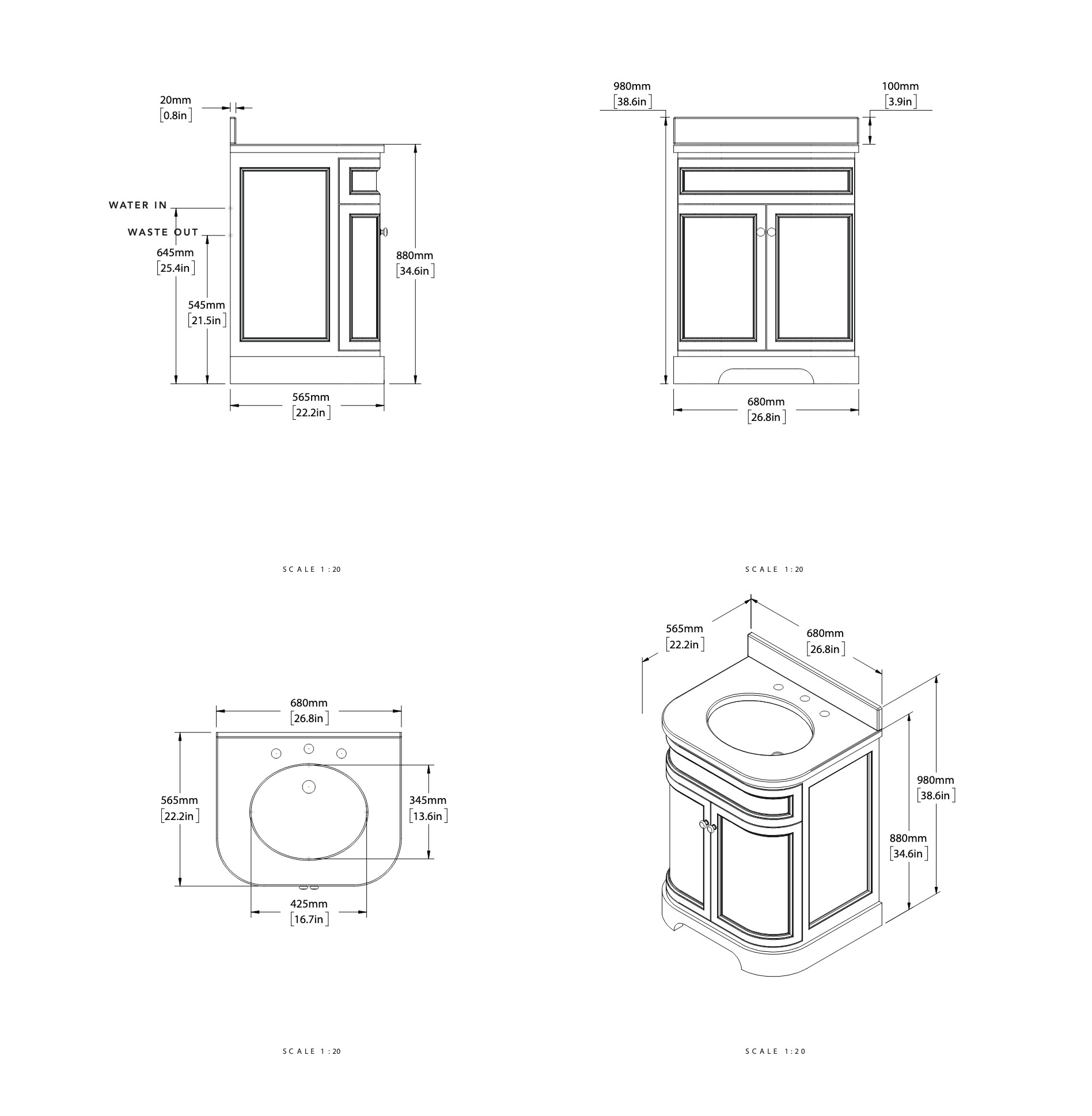 * Kranen, meubelknoppen, spiegels en lampen moeten apart worden besteld.