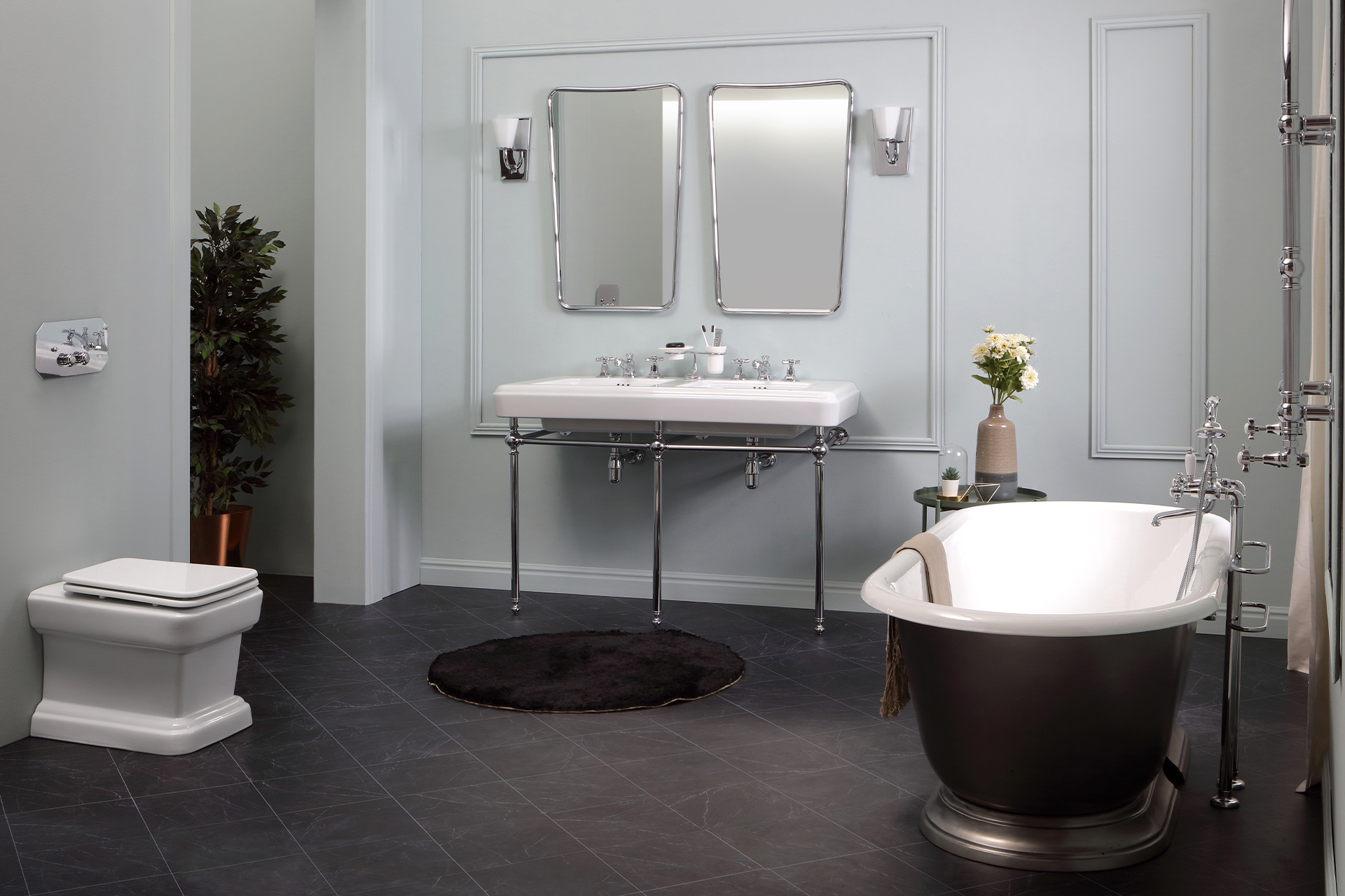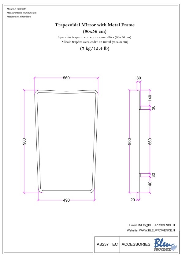 Klassieke trapezium badkamer spiegel met metalen lijst