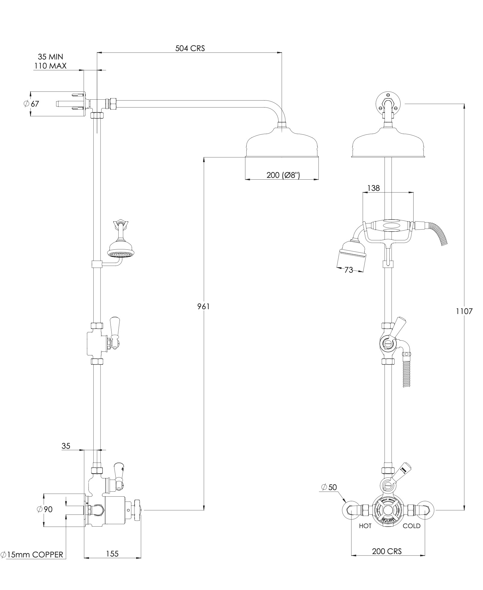 LB1900 Classic Godolphin opbouw douche-set met 8" douchekop en handdouche GDE-8704