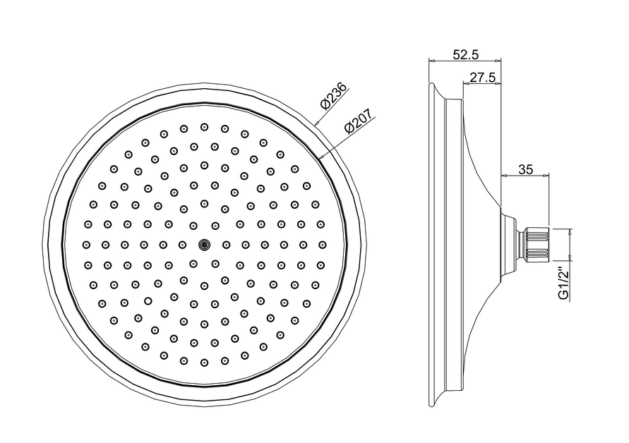 Edwardian 23cm (9") easy-clean douchekop V17NKL