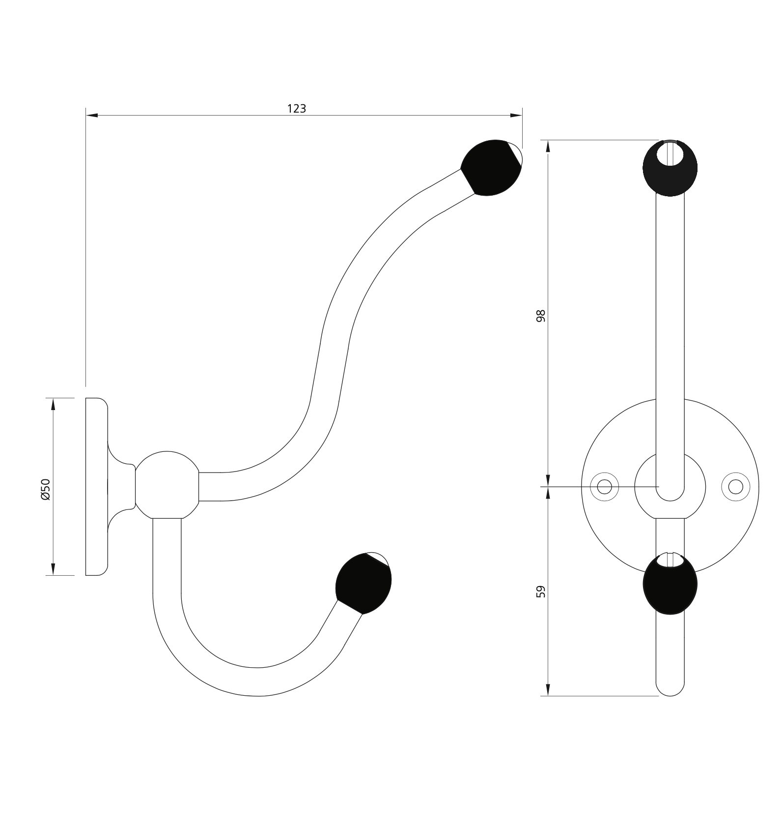 Lefroy Brooks 1900 Classic Black LB1900 Classic Black dubbele kledinghaak BK-4511