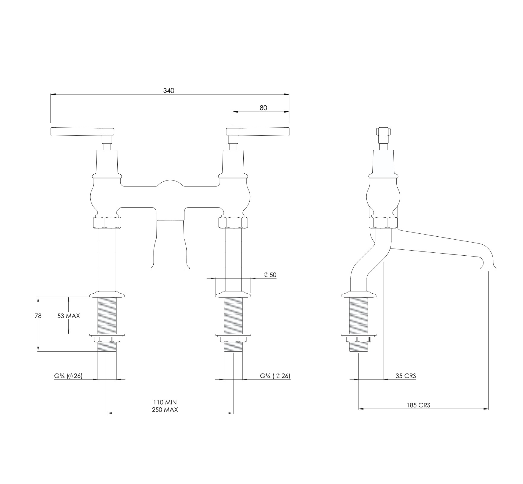 2-gats badkraan met hendels