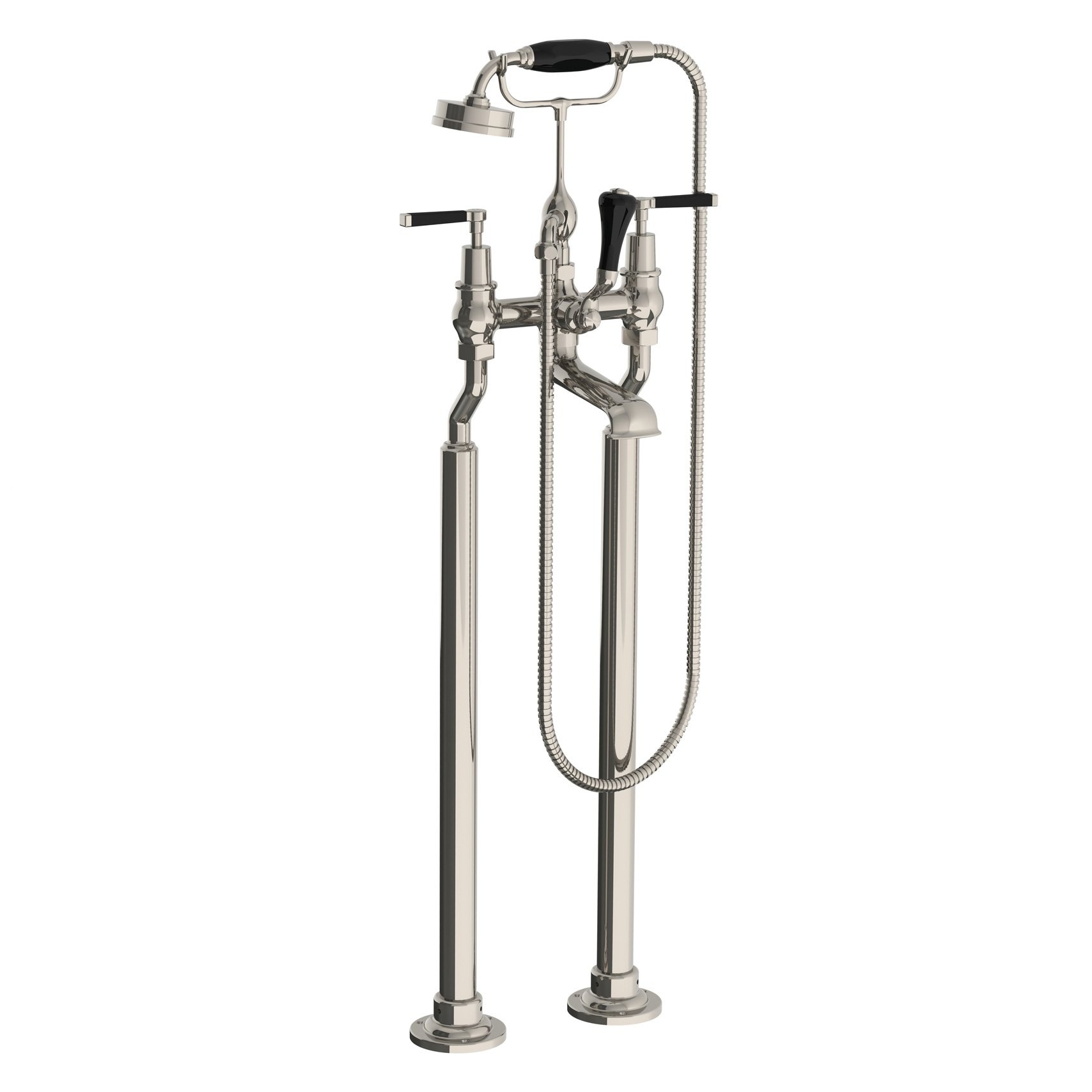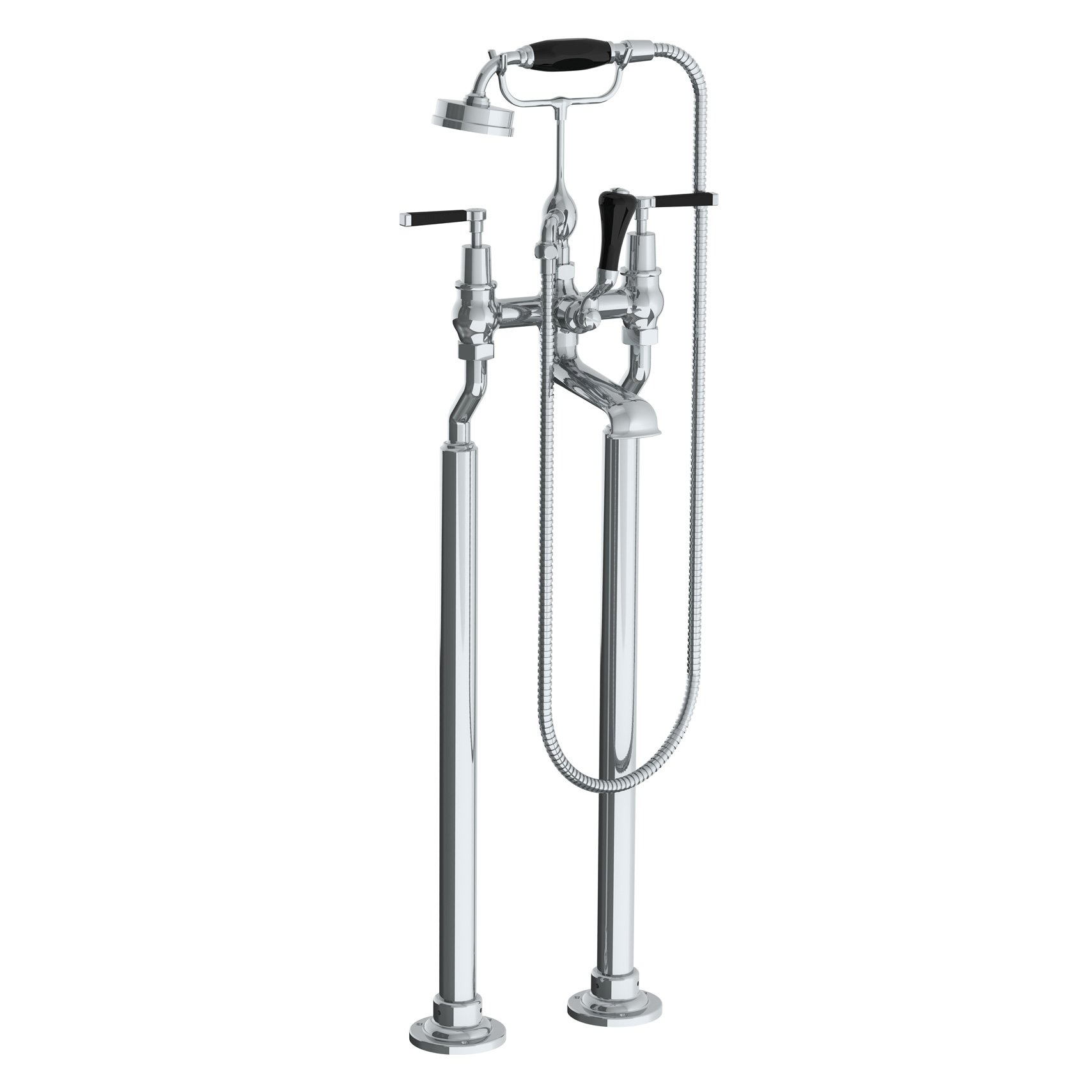 Bad-/douchemengkraan met hendels zwart; met vloer aasnluitpoten, vrijstaande montage; easy clean handdouce