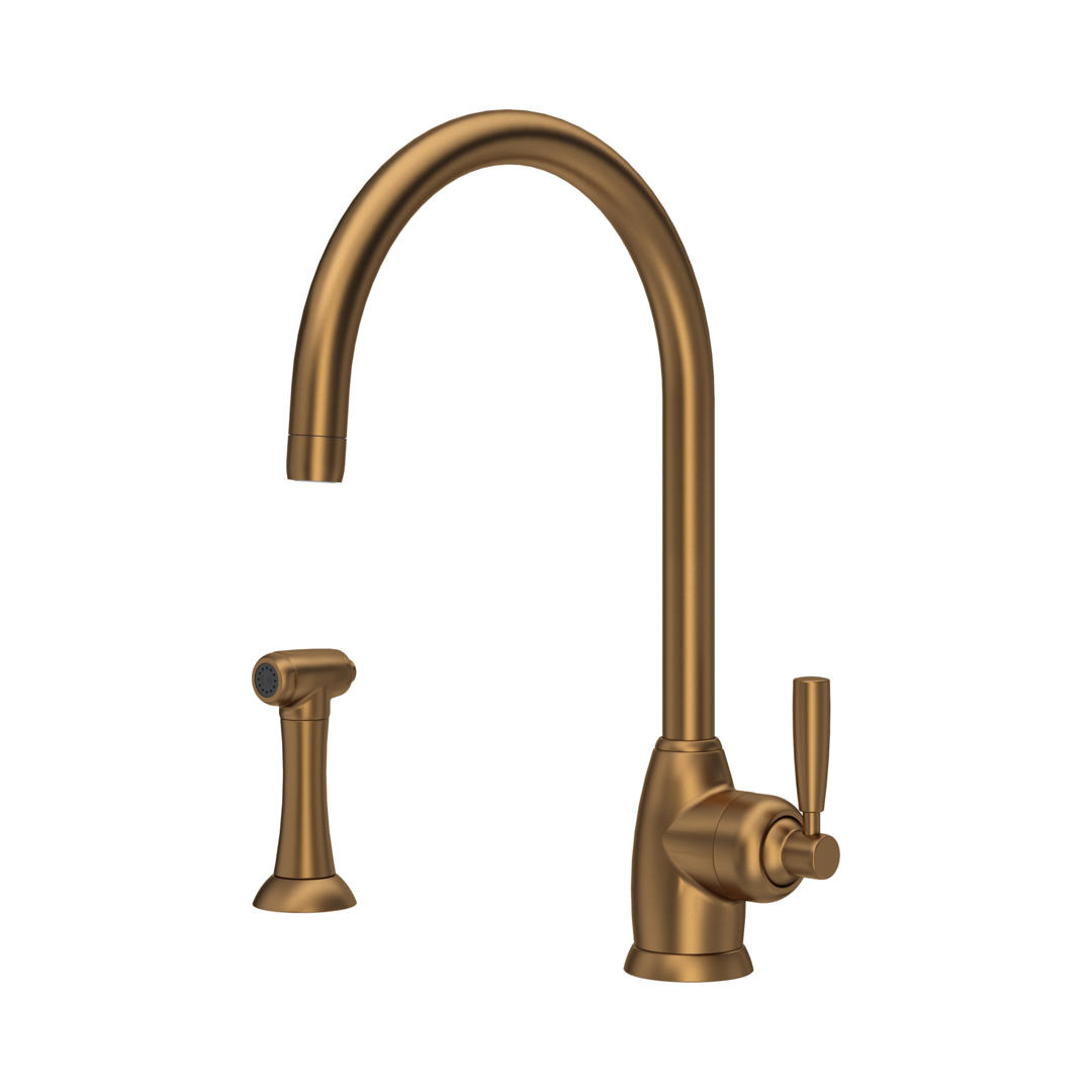 2-gats keukenkraan met hendel, zwenkbare uitloop C-vorm, handdouche en aerator voor gelijkmatige waterstroom.
