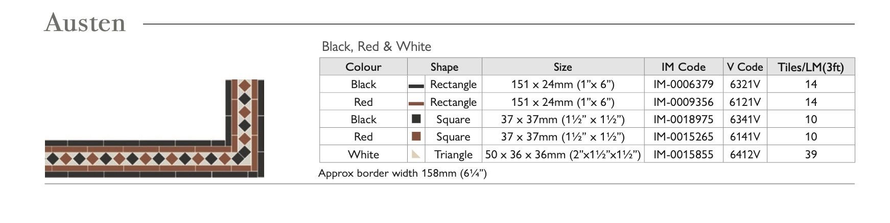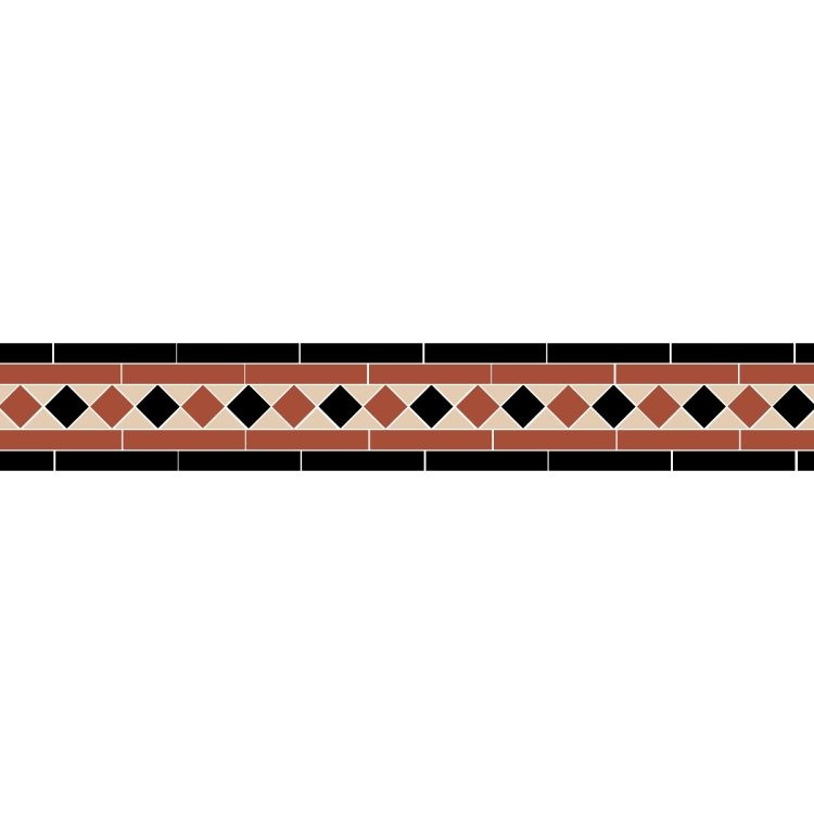 OS Victorian Floor vloertegels - Border Austen (Black, Red & White)