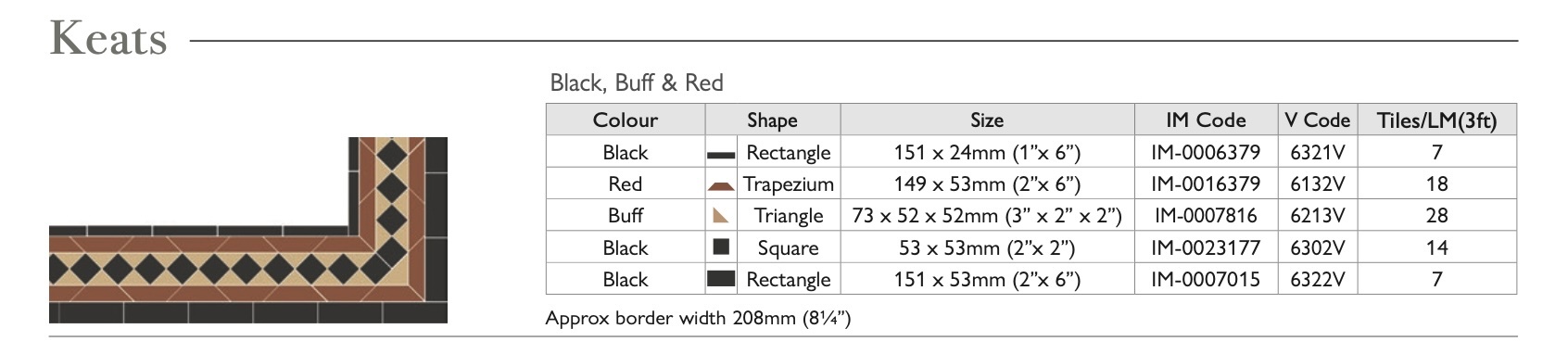 OS Victorian Floor vloertegels - Border Keats (Black, Buff & Red)