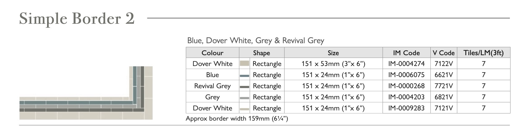 OS Victorian Floor vloertegels - Border Simple 2 (Blue, Dover White, Grey & Revival Grey)