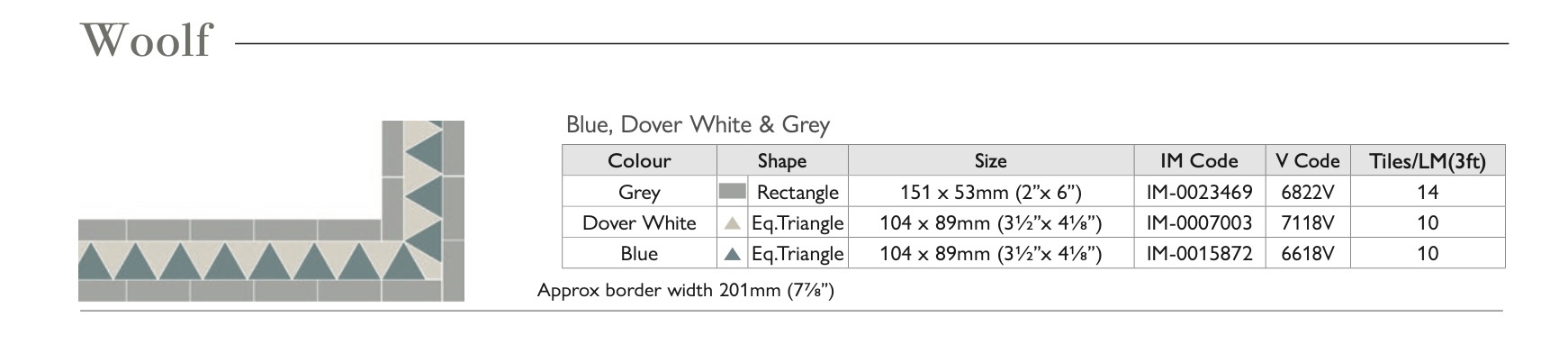 OS Victorian Floor vloertegels - Border Woolf (Blue, Dover White & Grey)