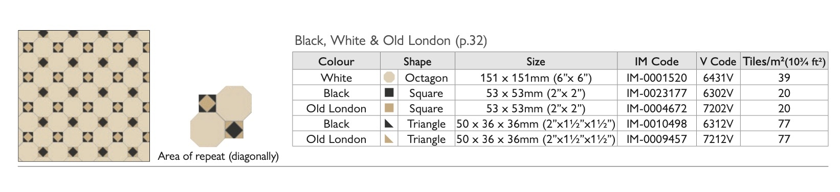 OS Victorian Floor vloertegels - Pattern Arundel 2(Black, White & Old London)