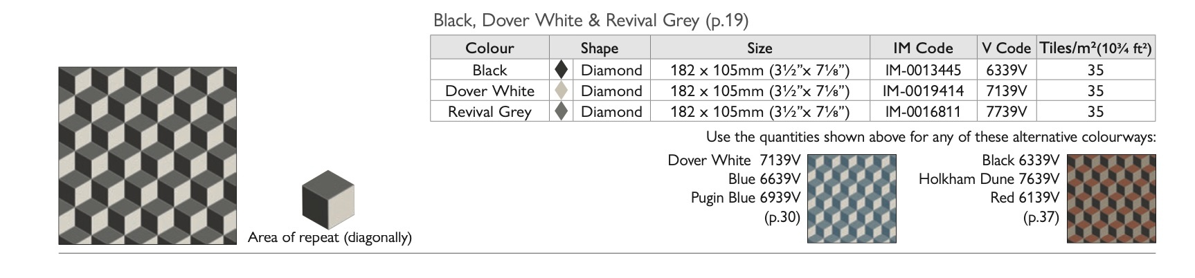 OS Victorian Floor vloertegels - Pattern Bloomsbury (Black, Holkham Dune & Red)