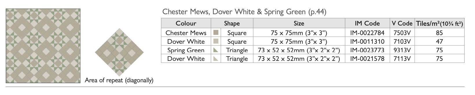 OS Victorian Floor vloertegels - Pattern Braemar (Chester Mews, Dover White & Spring Green)