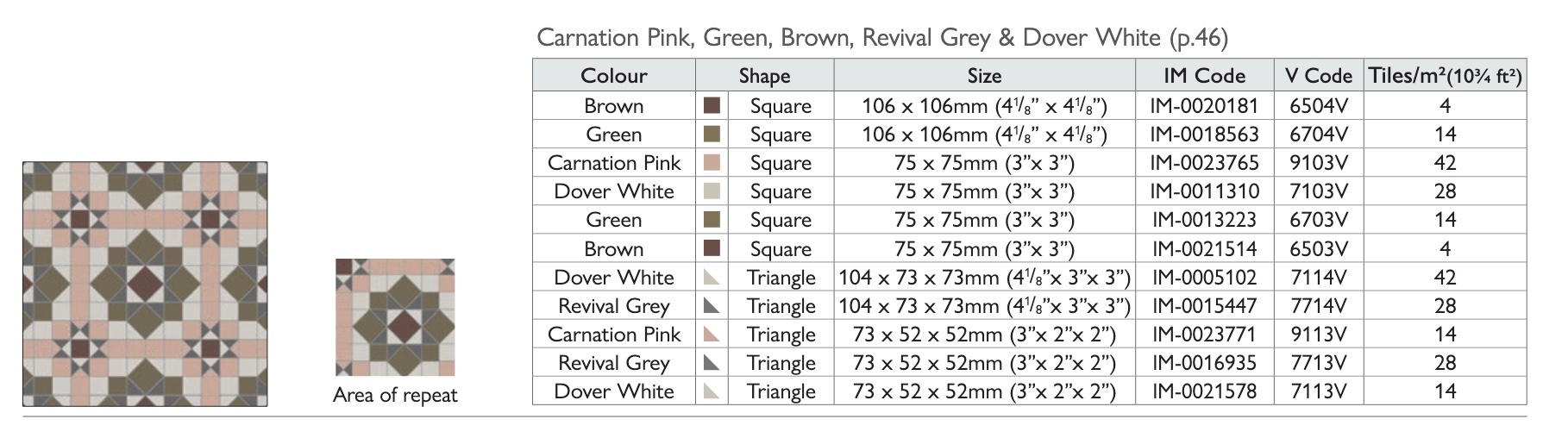 OS Victorian Floor vloertegels - Pattern Chatsworth (Carnation Pink, Green, Brown, Revival Grey & Dover White)