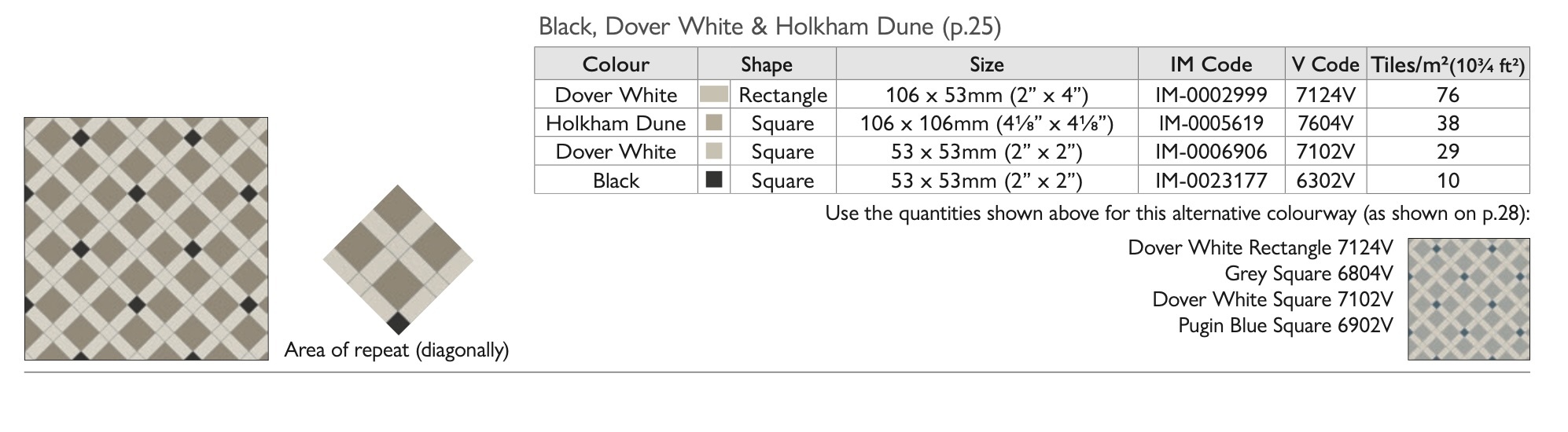 OS Victorian Floor vloertegels - Pattern Norwich (Black, Holkham Dune & Dover White)