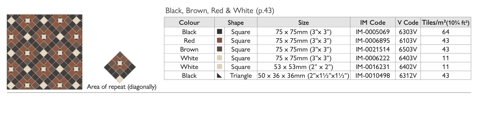 OS Victorian Floor vloertegels - Pattern Richmond (Black, Brown, Red & White)