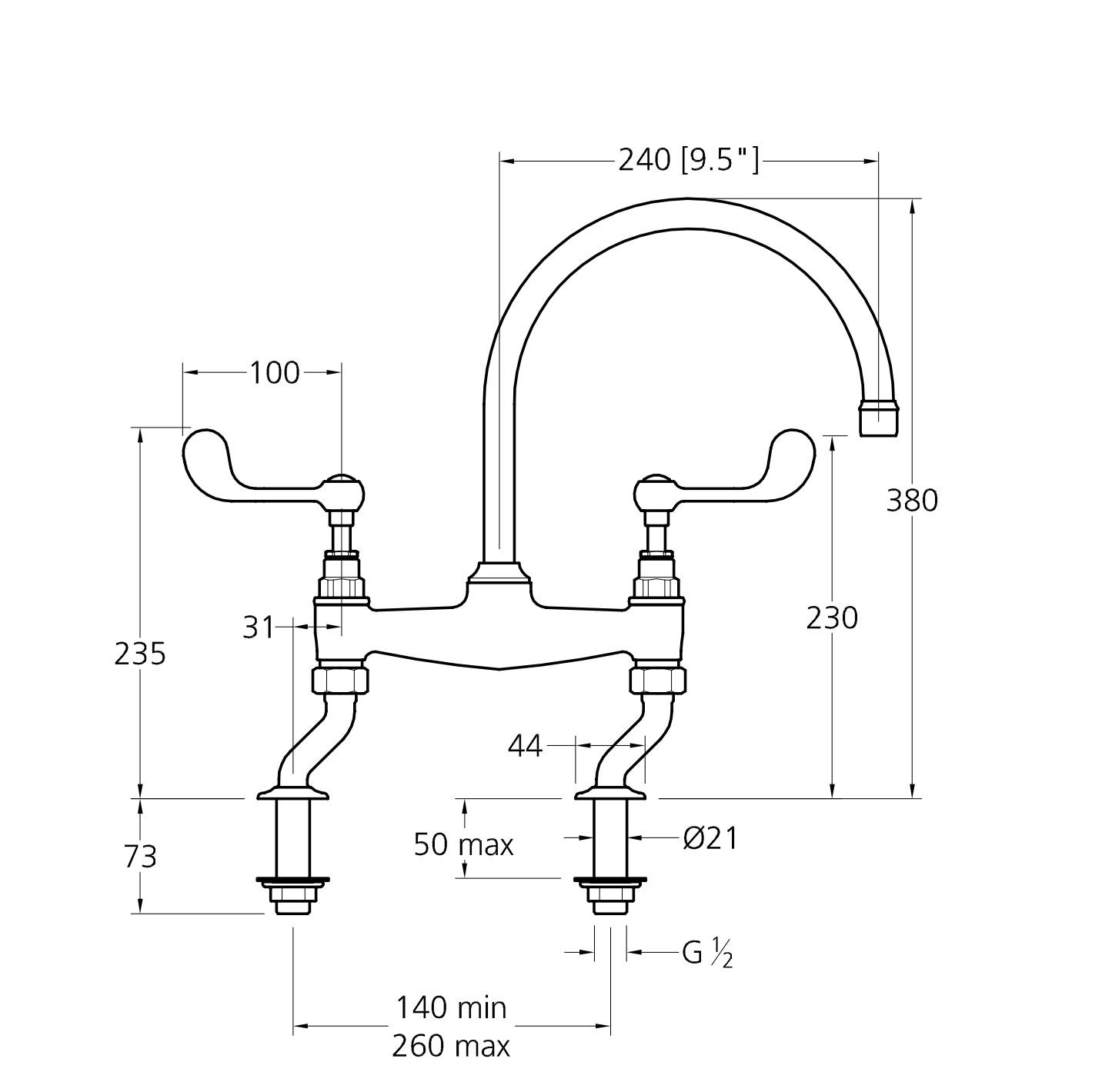 hoh aansluiting: 140 - 260 mm