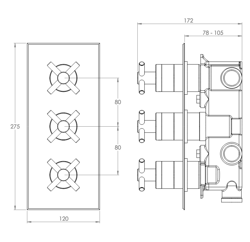 Pelham inbouw 3-weg douchethermostaat BS627