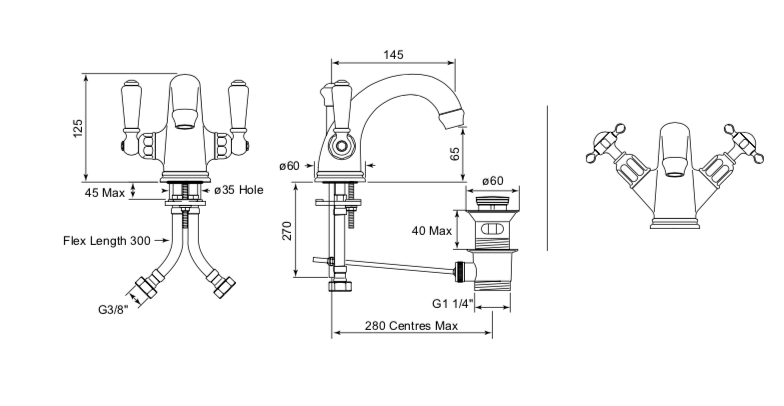 ex showroom: 1-gats wastafelmengkraan met hendels E.3635PF