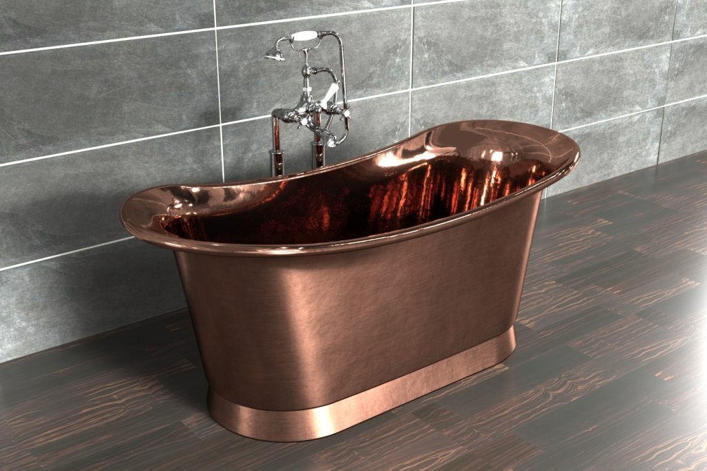 Vrijstaand koperen bad Bateau, afwerking geborsteld koper/brushed copper